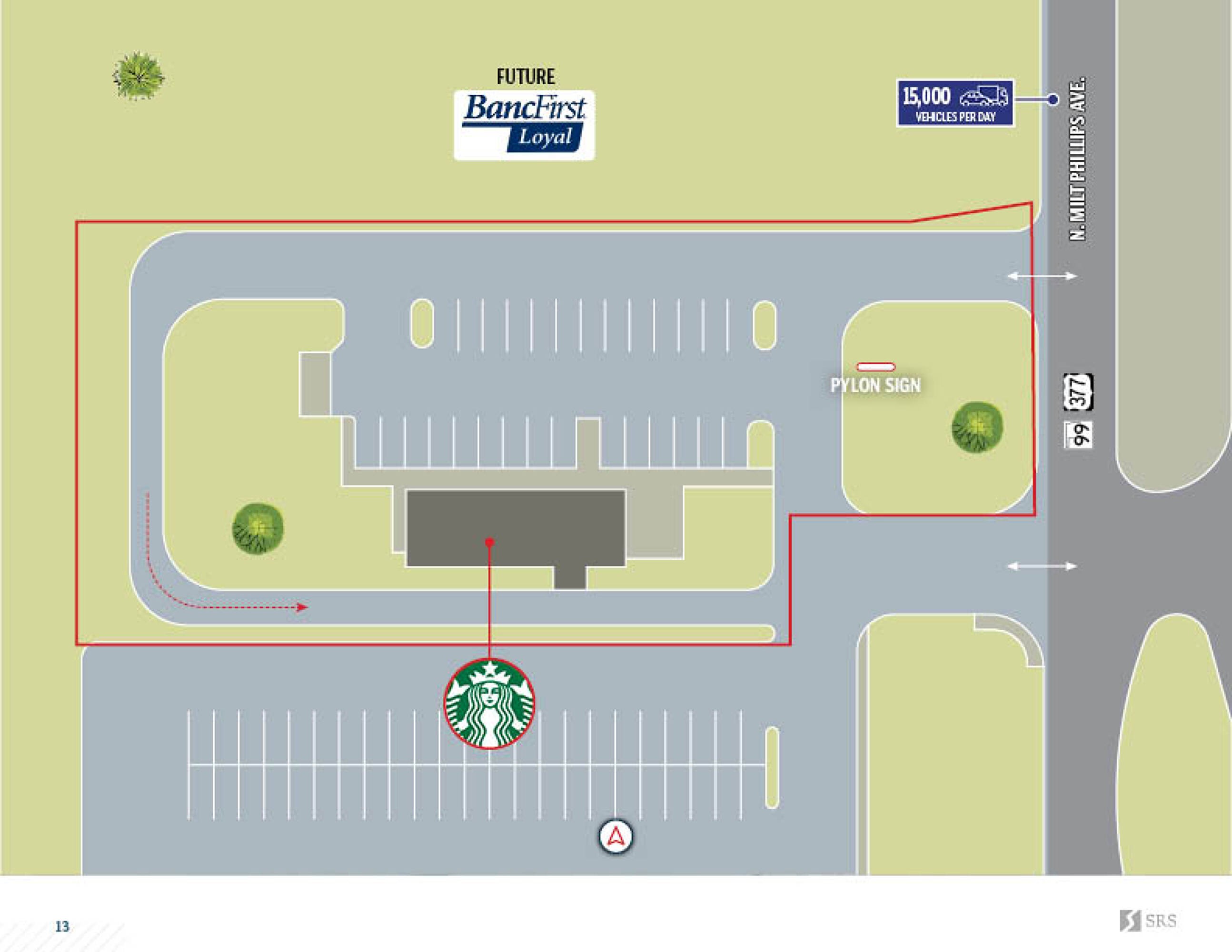• 교차로: W. Wrangler Blvd./State Highway 9와 State Highway 99의 신호등이 있는 교차로 근처에 위치 (일일 교통량 27,600대 이상)